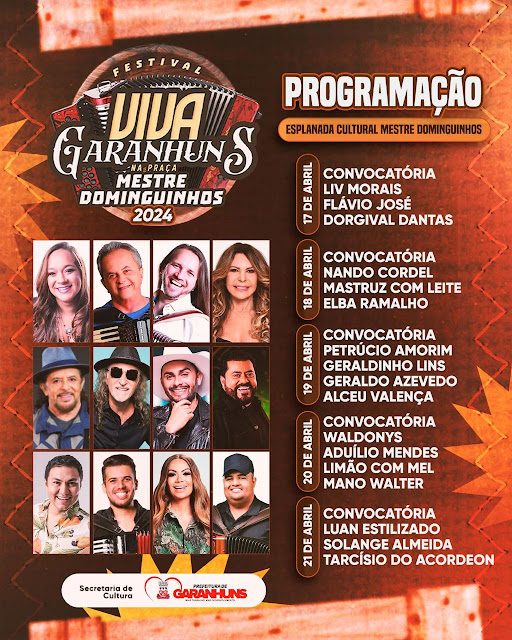 GRANDES SHOWS / Prefeitura de Garanhuns divulga atrações do Viva Garanhuns 2024